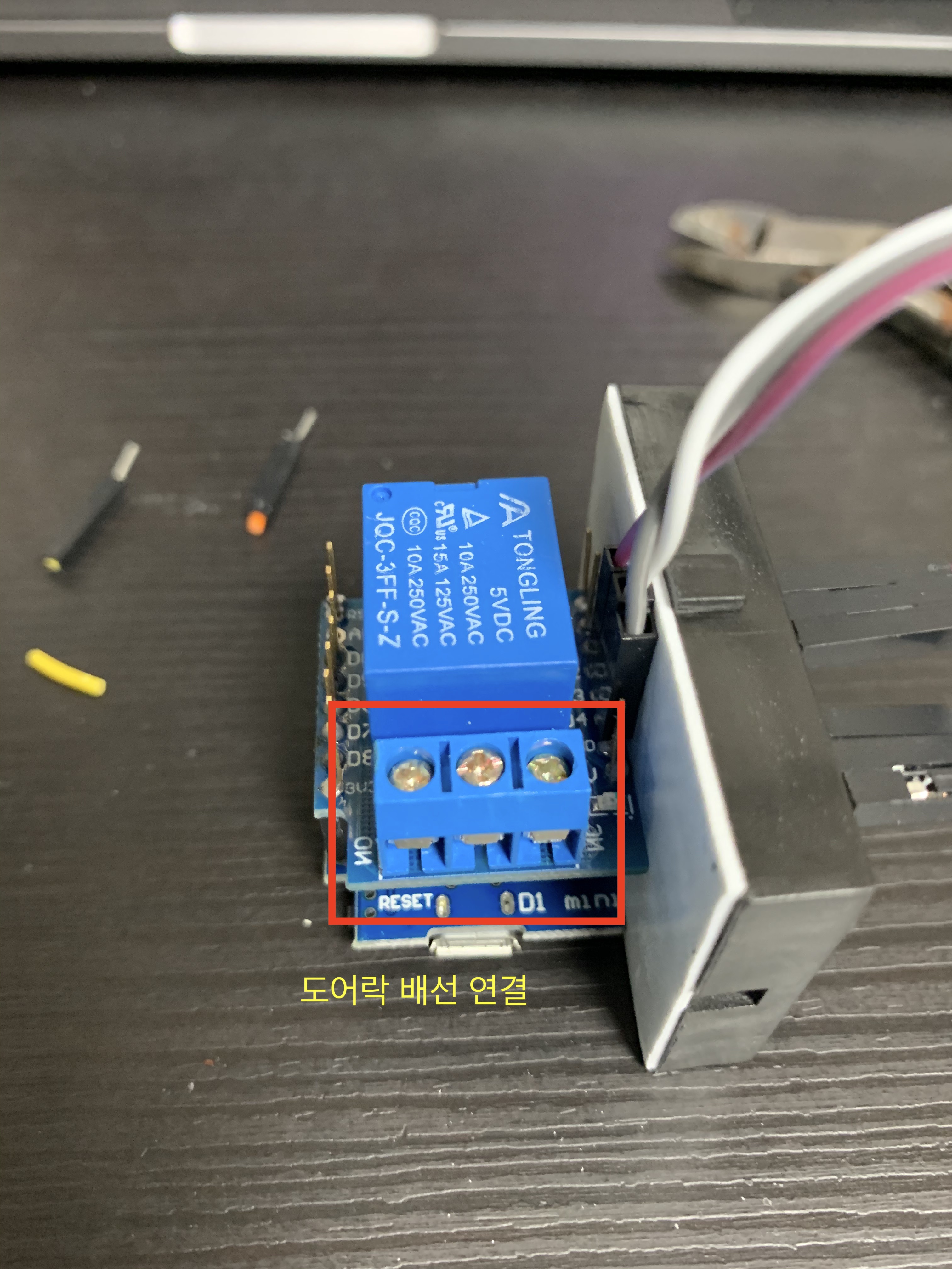 릴레이와 esp와 전압 다운을 위한 회로를 붙여