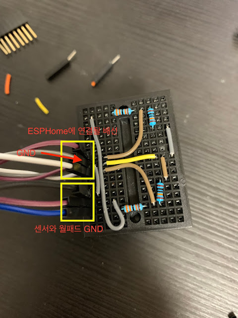 결과적으로 GND, 도어센서 1선, 모션센서 1선